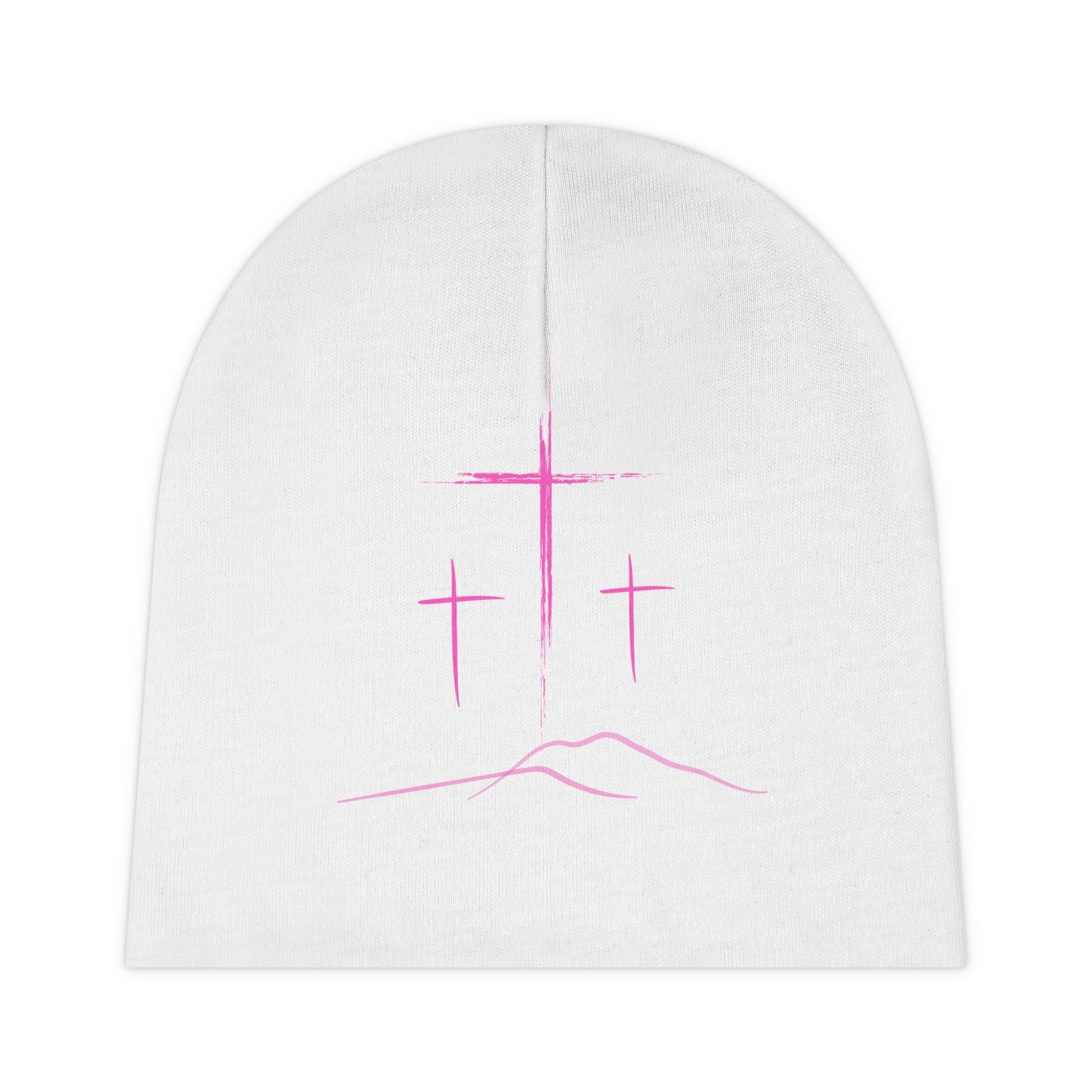 The Pink & White Beanie - 3 Cross Collection is a vibrant pop of style to your winter wardrobe. This eye-catching white beanie features black font and a cross design, showcasing our embroidery with Spiritual Spartan branding.