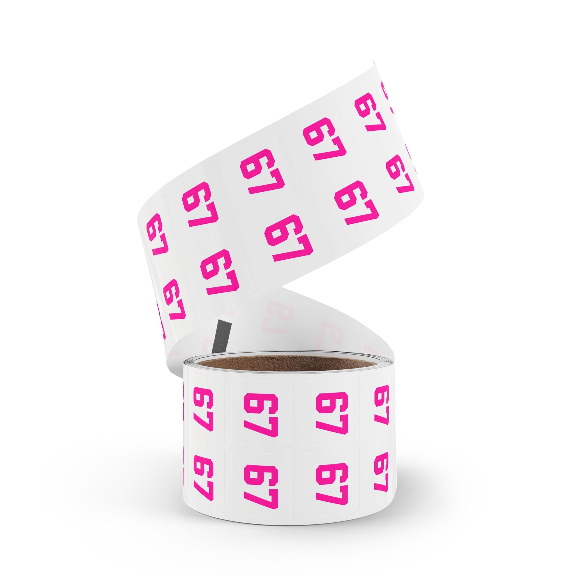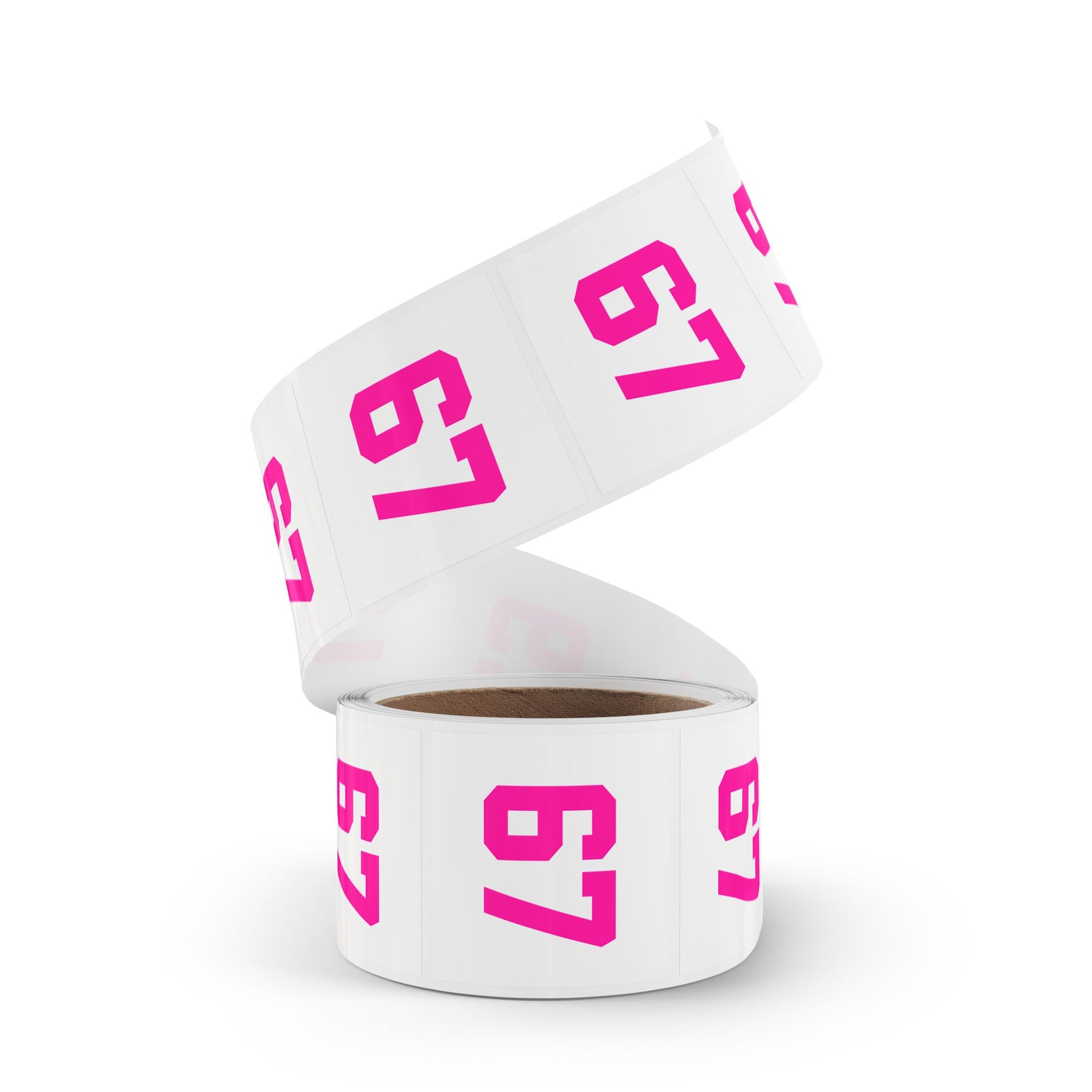- Available in 1" x 1" and 2" x 2" square sizes, pink number version